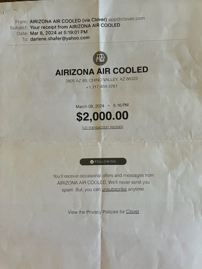 Here are documents from 2024 and below are pictures of the boxes of parts delivered in early 2024. And below those are pictures of the engine he delivered without ever telling me it was not the same size as the one I had given him.