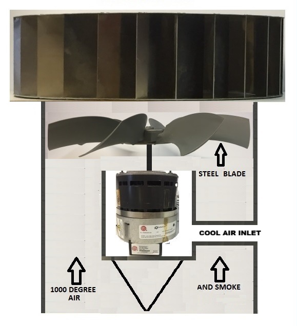 This artist conception shows the elegant simplicity that allows Invisco to say this fan will last for hours in 1000 degree air. There is a patent pending on this. The motor is cooled by air pulled in from the outside. The cool air ensures the motor can operate as designed for as long as needed. The simple design reduces the cost of parts and assembly so the price of this is far below competition.