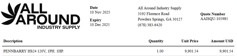 Here is Penn Barry’s quote for a larger fan, the HS24,